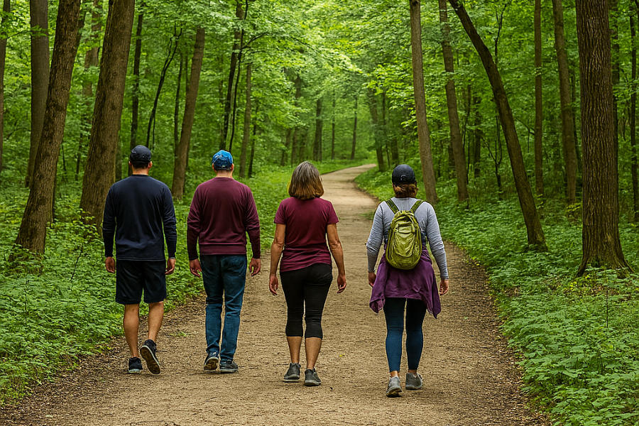 by walking more than two miles of trails that